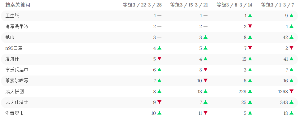 根据国外最近研究数据表明,3月份,消费者在亚马逊在线平台上搜索最多的十个热门产品均为防疫相关物品。