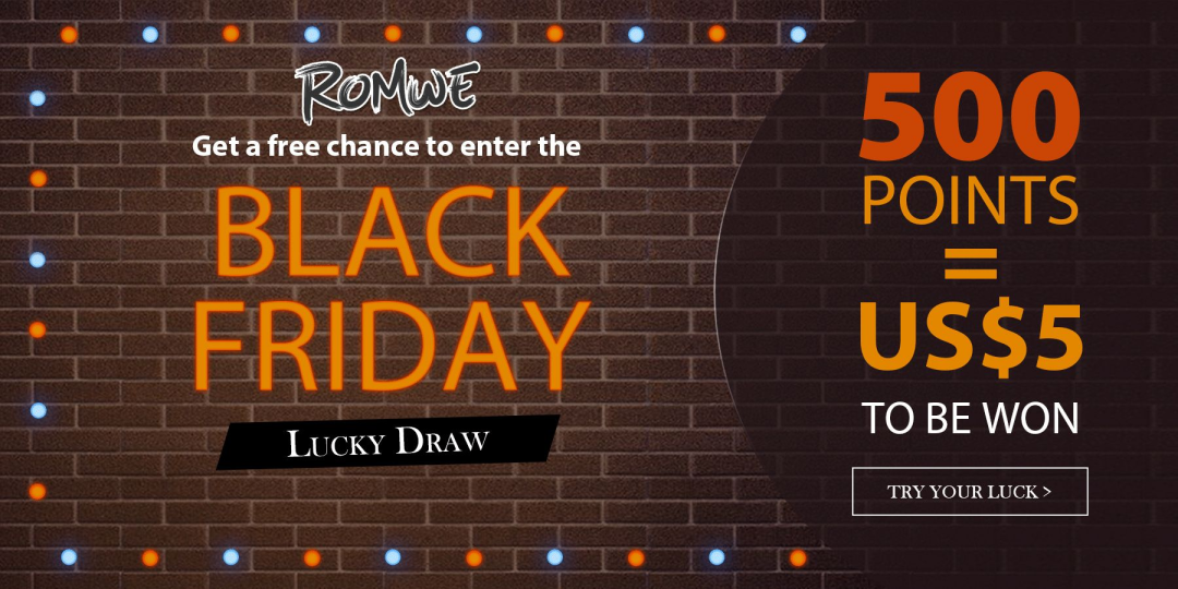以下是Romwe如何以积分形式提供黑色星期五幸运抽奖奖励,以鼓励客户购买更多商品。